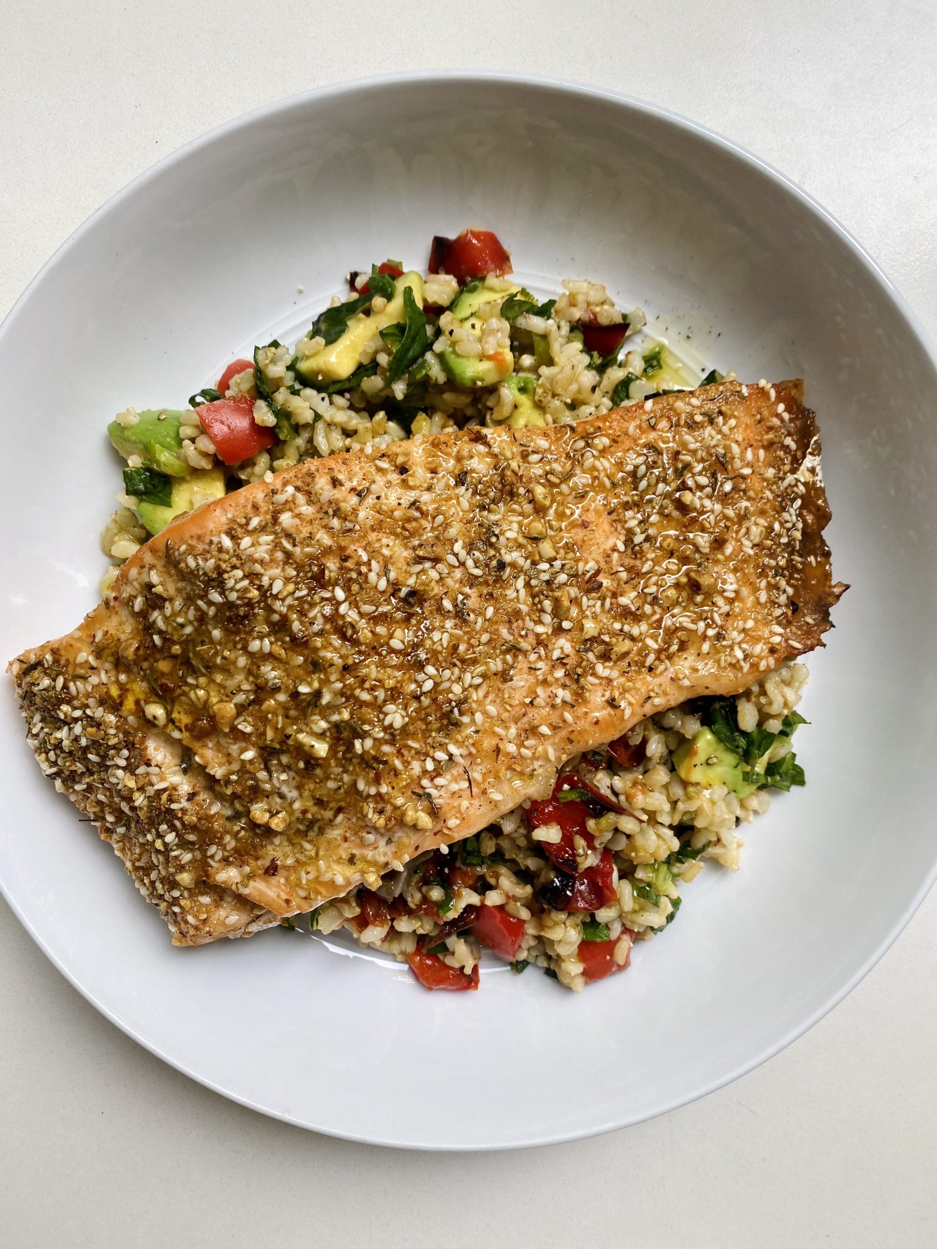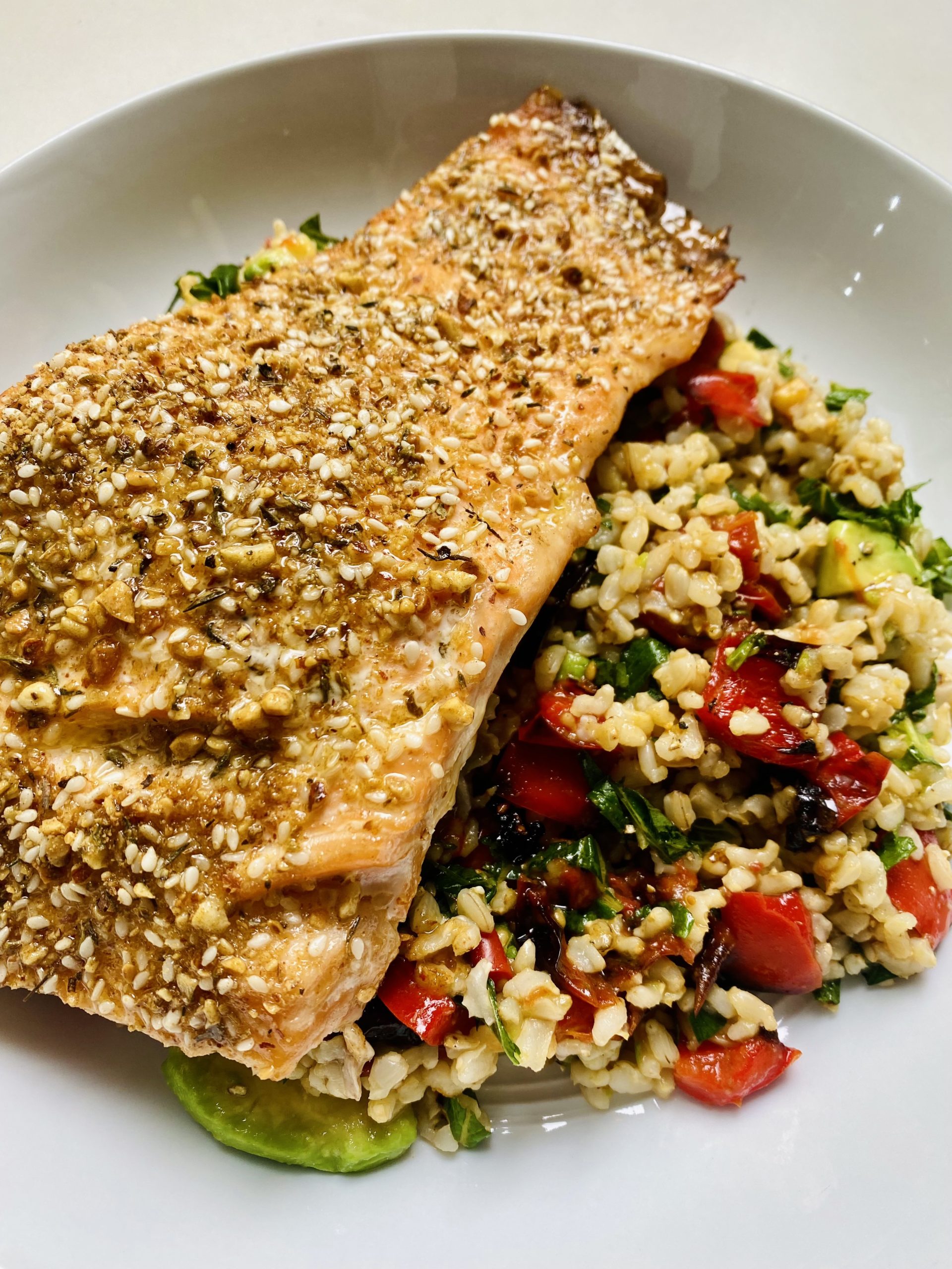 - Sprinkle of dukkah over each salmon fillet