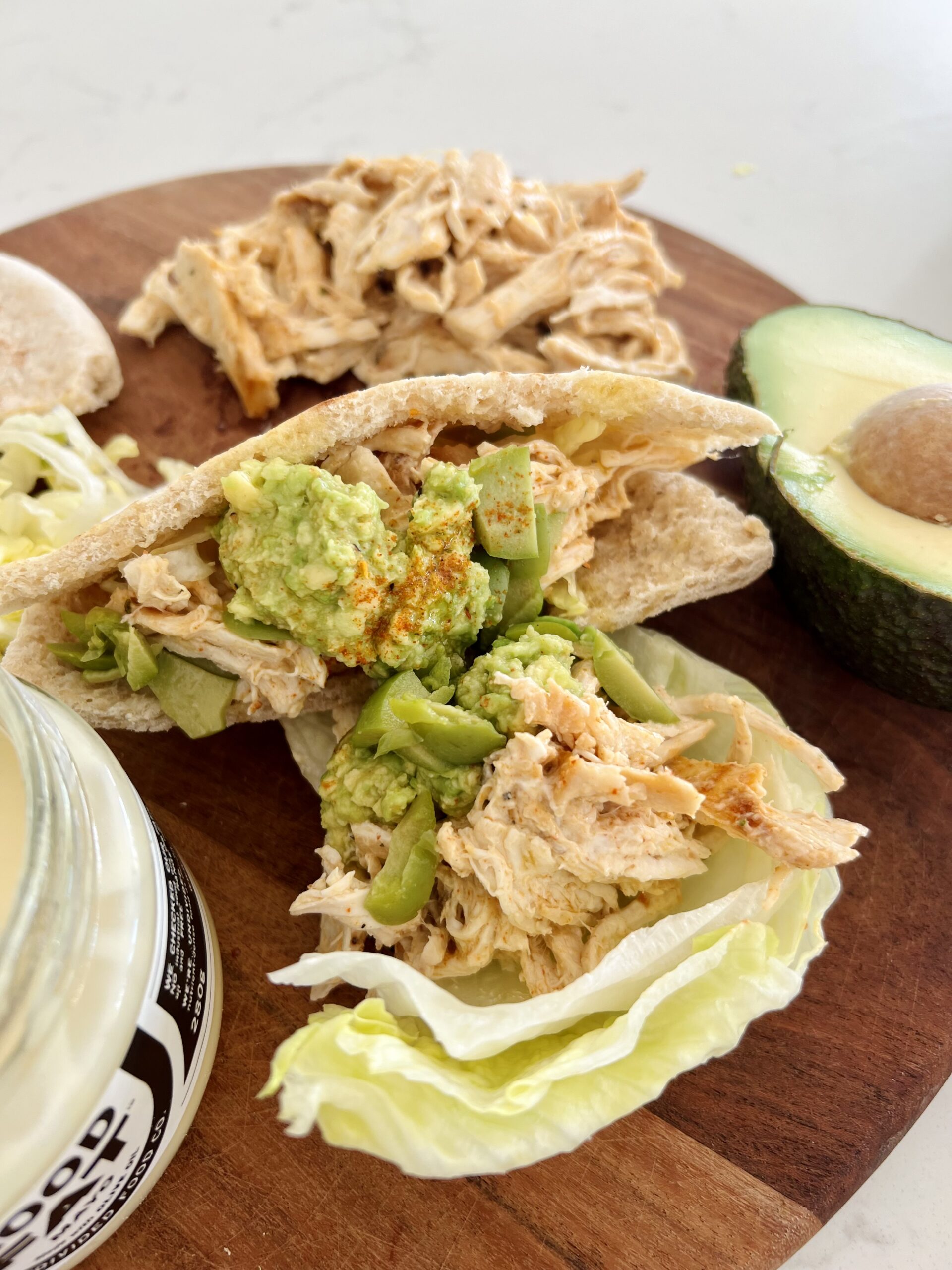 MAYO SHREDDED CHICKEN PITTAS